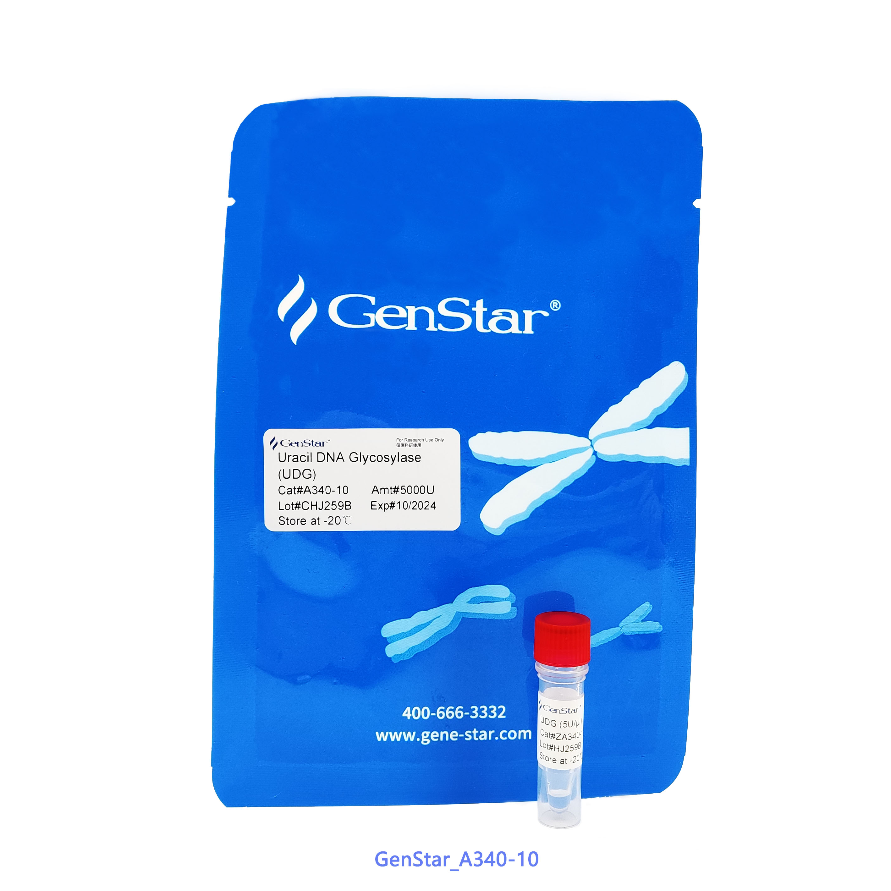 本產品為大腸桿菌來源的重組尿嘧啶 DNA 糖基化酶(UDG),可催化水解含有尿嘧啶的 DNA 鏈和糖磷酸骨架的 N-糖苷鍵,釋放游離尿嘧啶。UDG 能有效水解單鏈或雙鏈 DNA 上的尿嘧啶,但對寡聚核苷酸(<6 個堿基)和 RNA 無活性。