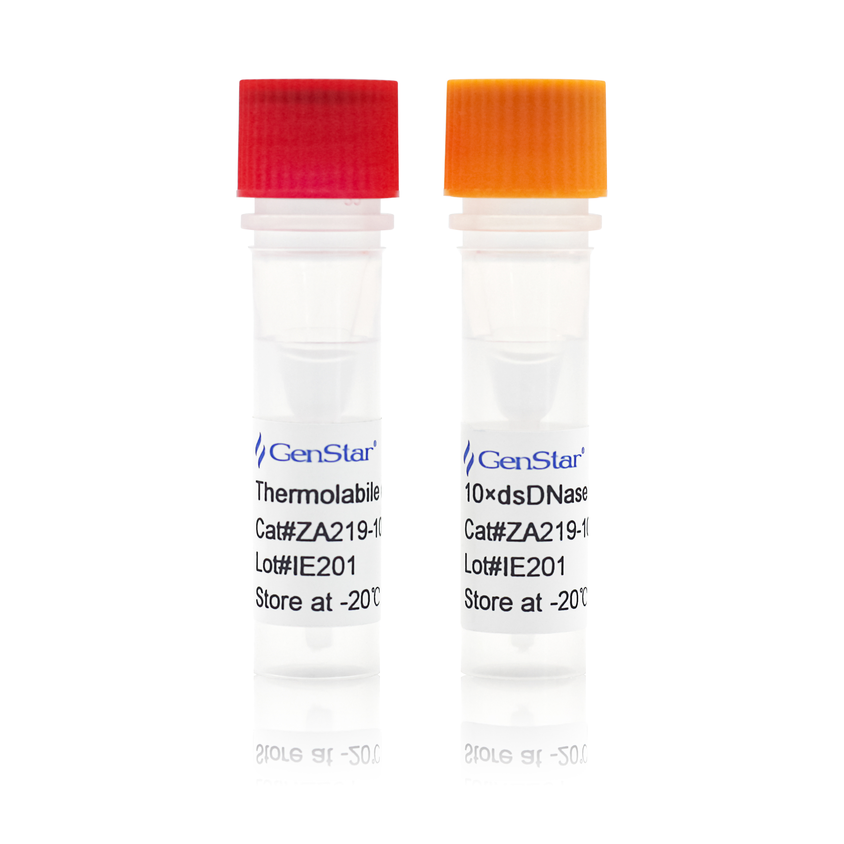Thermolabile dsDNase 是一種熱敏感性的核酸內切酶,能夠裂解 DNA 中的磷酸二酯鍵,生成帶有 5'- 磷酸和 3'- 羥基末端的寡核苷酸。本產品可特異性消化雙鏈 DNA(double-stranded DNA,dsDNA),不會對單鏈 DNA、引物、探針和 RNA 造成影響。同時,本產品具有熱敏感特性,可在 55℃ 條件下快速失活。與傳統的使用 DNase I 去除基因組 DNA 污染的方法相比,無需額外加入 EDTA 等保護試劑,可有效減少對 RNA 的損傷。Thermolabile dsDNase 適用于反轉錄實驗前快速去除 RNA 樣本中的基因組 DNA 污染,節省實驗時間,保證 RNA 水平定量的準確性。