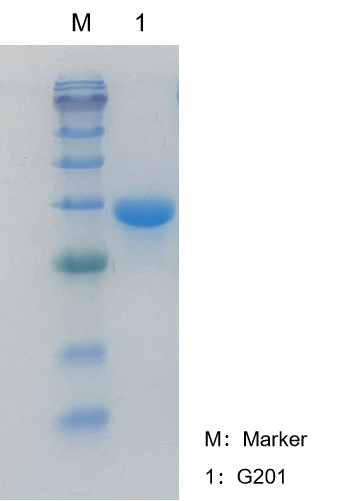 GenStar #G201 SDS-PAGE電泳結果顯示,除酶蛋白外無其它雜帶,純度>95%。
