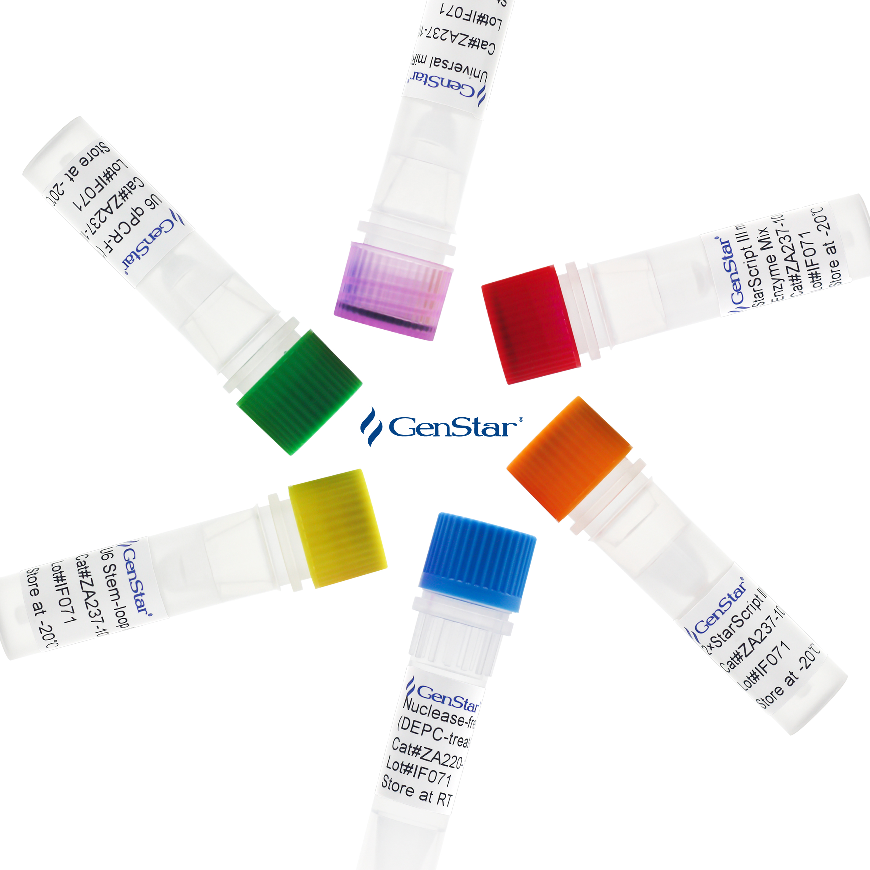 推薦使用通用的莖環序列為 5'-GTCGTATCCAGTGCAGGGTCCGAGGTATTCGCACTGGATACGAC-3',也可根據實驗需求選擇其它莖環序列。通常情況下,逆轉錄引物只需在莖環序列上添加目的 miRNA 3’ 端的 6 個反向互補堿基即可。 此方法特異性高,只對成熟的 miRNA 進行反轉錄,不受其前體干擾,序列高度同源的 miRNA 也可以精確區分。使用本產品獲得的逆轉錄產物可直接用于后續的染料法或探針法熒光定量檢測。染料法推薦使用本公司的 2×RealStar Fast SYBR qPCR Mix(Cat#A301),探針法推薦使用本公司的 2×RealStar Fast Probe Mix(Cat#A351),以獲得更優的實驗結果。