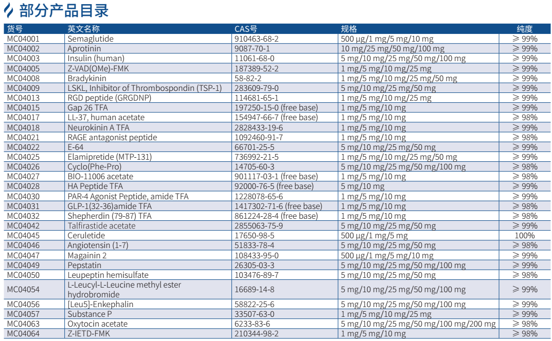 本界面只顯示部分產品信息,若想獲取更多小分子系列產品信息,請聯系我們銷售或致電技術支持熱線:400-666-3332