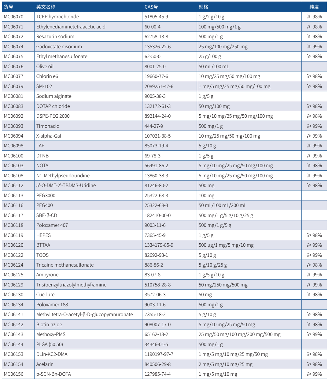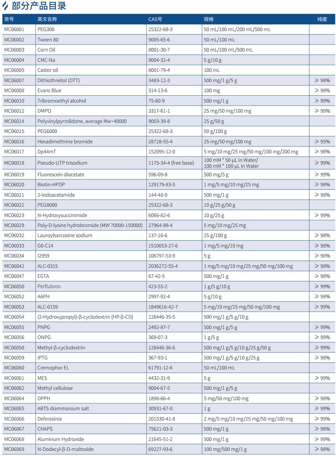 本界面只顯示部分產品信息,若想獲取更多小分子系列產品信息,請聯系我們銷售或致電技術支持熱線:400-666-3332