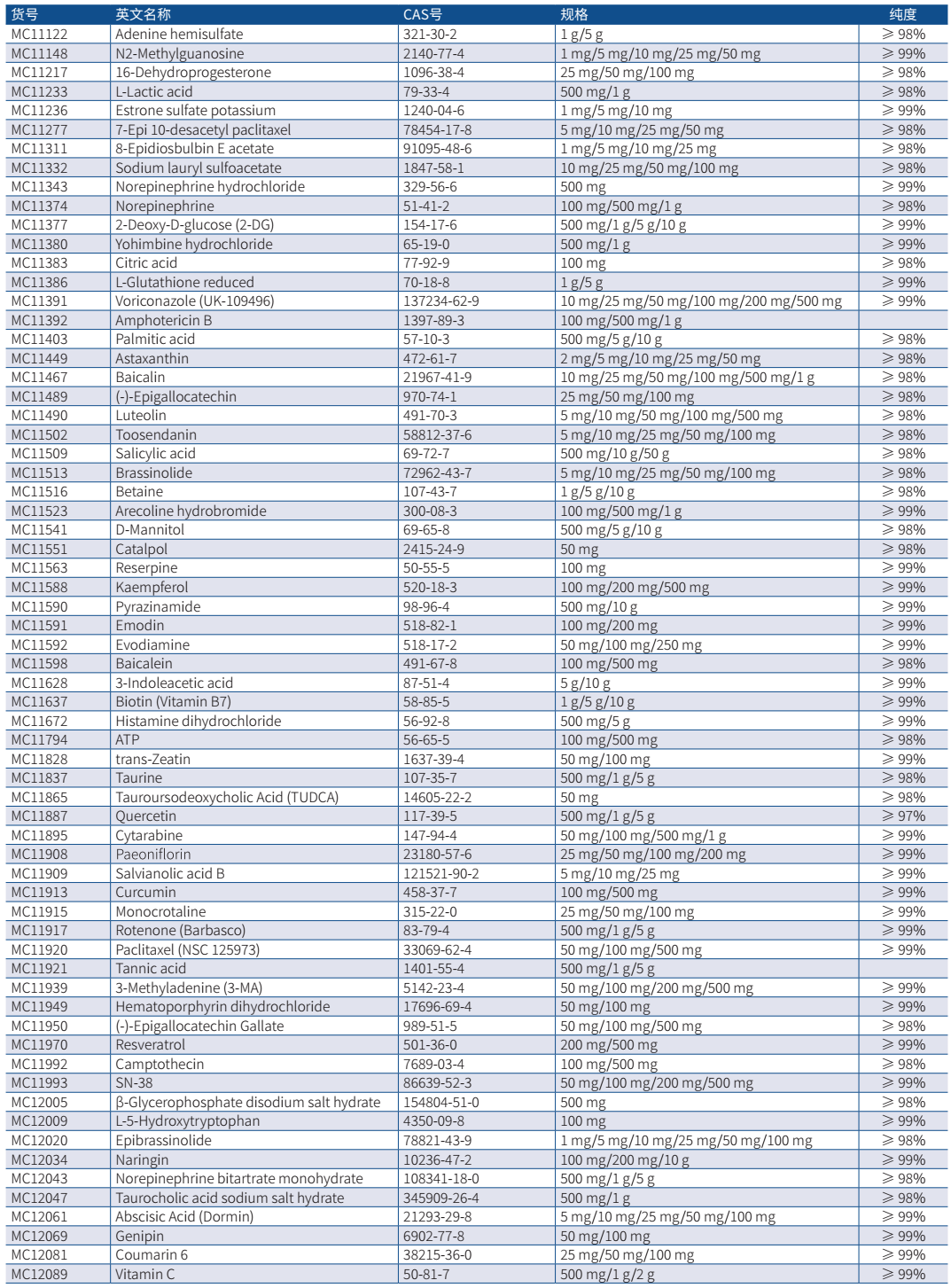 本界面只顯示部分產品信息,若想獲取更多小分子系列產品信息,請聯系我們銷售或致電技術支持熱線:400-666-3332