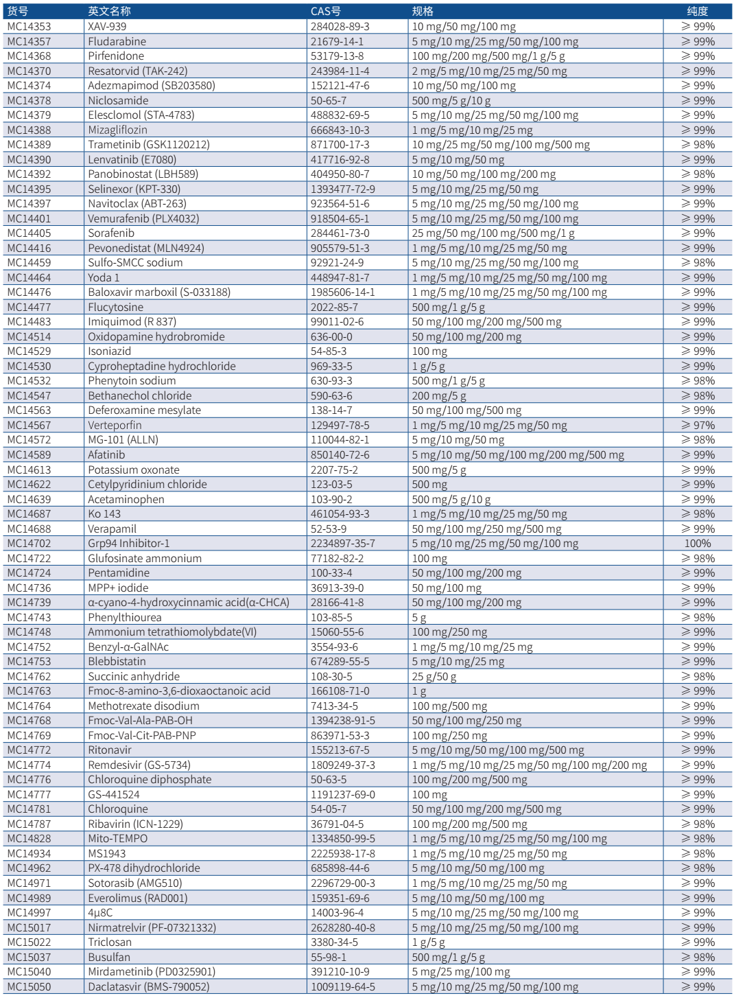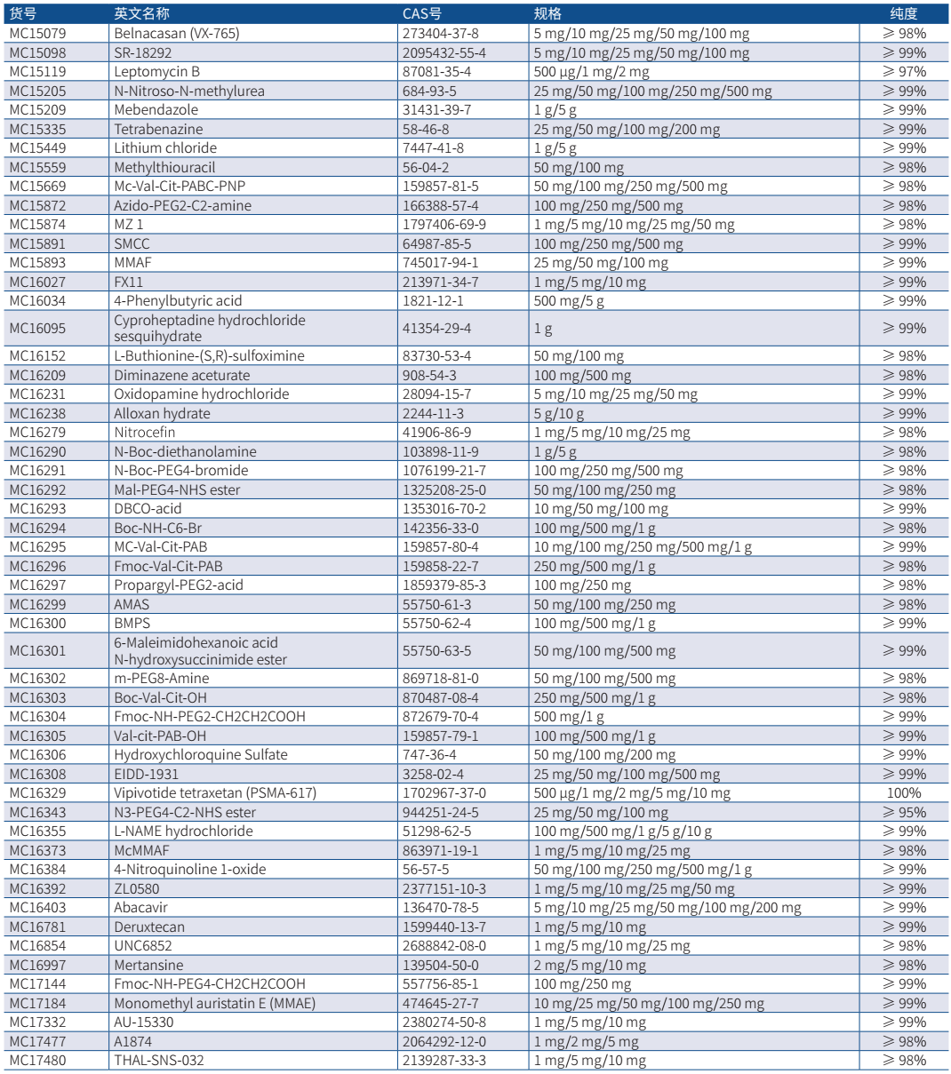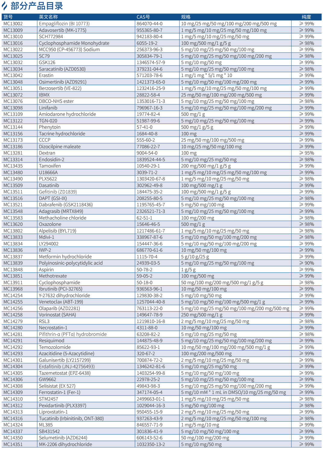 本界面只顯示部分產品信息,若想獲取更多小分子系列產品信息,請聯系我們銷售或致電技術支持熱線:400-666-3332